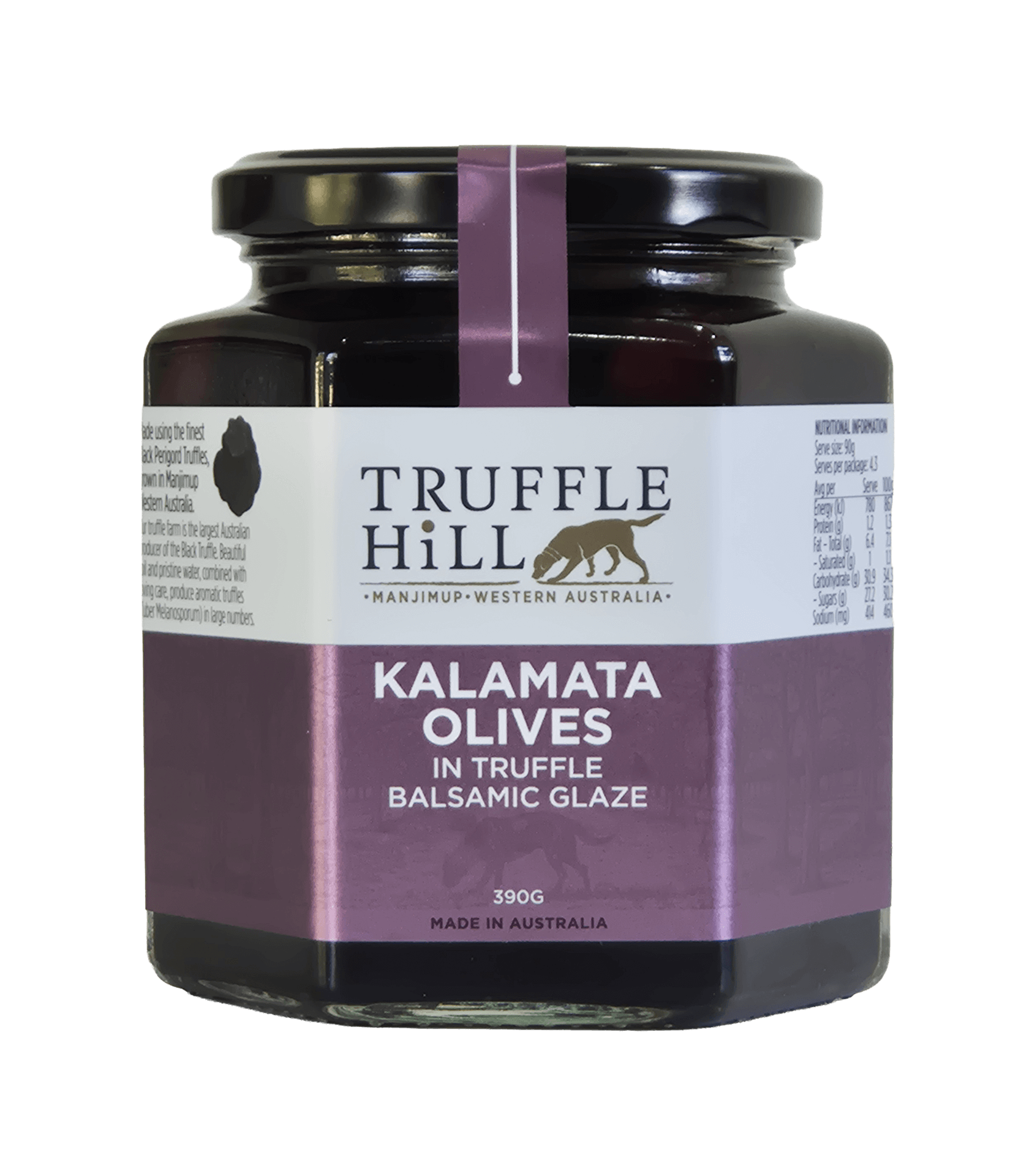 Plump Kalamata olives coated in a rich truffle infused balsamic glaze for a balanced sweet-savoury finish.